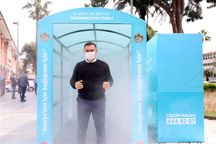 COVID-19 Dezenfeksiyon Ekibinin çalışmalarına dair açıklamada bulunan Alanya Belediye Başkanı Adem Murat Yücel, “Zorlu geçen pandemi sürecinde şehirde faaliyeti kısıtlanan işletmelere destek vermek amacıyla birçok faaliyetimiz oldu. Bu çalışmaların en önemlilerinden bir tanesi de Çevre Koruma ve Kontrol Müdürlüğü bünyesinde kurulan Dezenfeksiyon Ekibinin yaptığı çalışmalardır. Alanya’daki birçok kamusal binaya düzenli olarak dezenfeksiyon hizmeti sunulmasının yanı sıra özel sektörde faaliyet gösteren ve riskli sayılabilecek eczane, kuaför, taksi hizmetleri, minibüs ve servis hizmetleri vb. talep gelen sektörlere de yardımcı olundu. Pozitif vaka tespit edilen hanelere de gidilerek hem hane hem de apartmanın ortak kullanım alanlarında dezenfeksiyon hizmeti verildi” dedi.