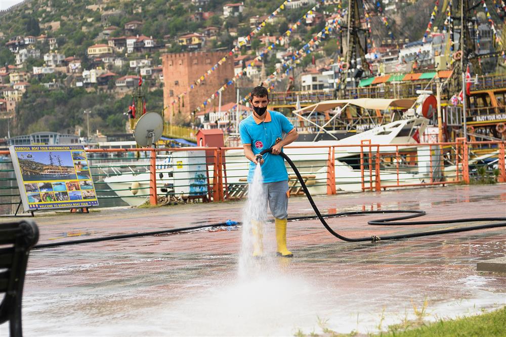 Alanya Belediyesi Temizlik İşleri Müdürlüğü’ne bağlı ekipler, Alanya genelinde kısıtlamaları fırsata çevirerek doğu, batı ve merkez mahallelerde genel temizlik çalışması yaptı...