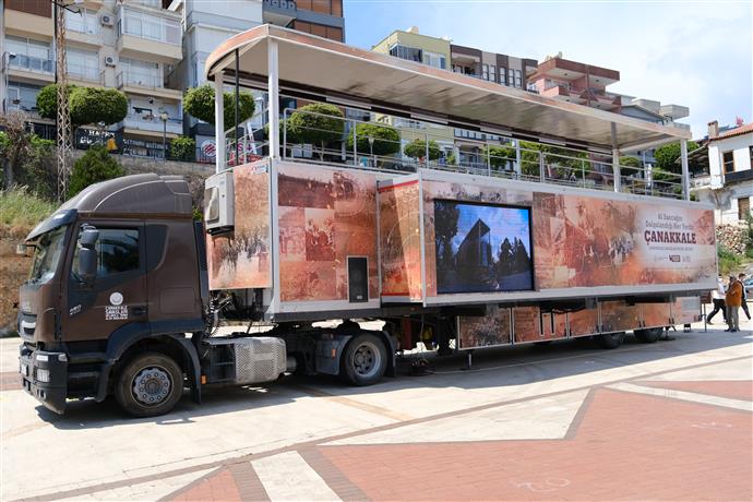 Çanakkale’ye henüz gitmemiş olan, bu şanlı zafere ve mirasına tanıklık edemeyen insanlarımız için bir “Mobil Tır” Alanya İskele Şelale Meydanı’nda ücretsiz olarak sergileniyor. İçerisinde Çanakkale Savaşı ile ilgili resimlerin, fotoğrafların, çeşitli görsel materyallerin ve videoların izletileceği ekranların, Çanakkale Cephesinden günümüze kalan çeşitli savaş objelerinin sergileneceği bir bölümün ve Çanakkale askerinin heykelinin de bulunduğu Çanakkale Savaşları Mobil Müzesi, Çanakkale ruhunu, tıpkı o gündeymiş gibi yaşayabilmelerini sağlamayı amaçlıyor.