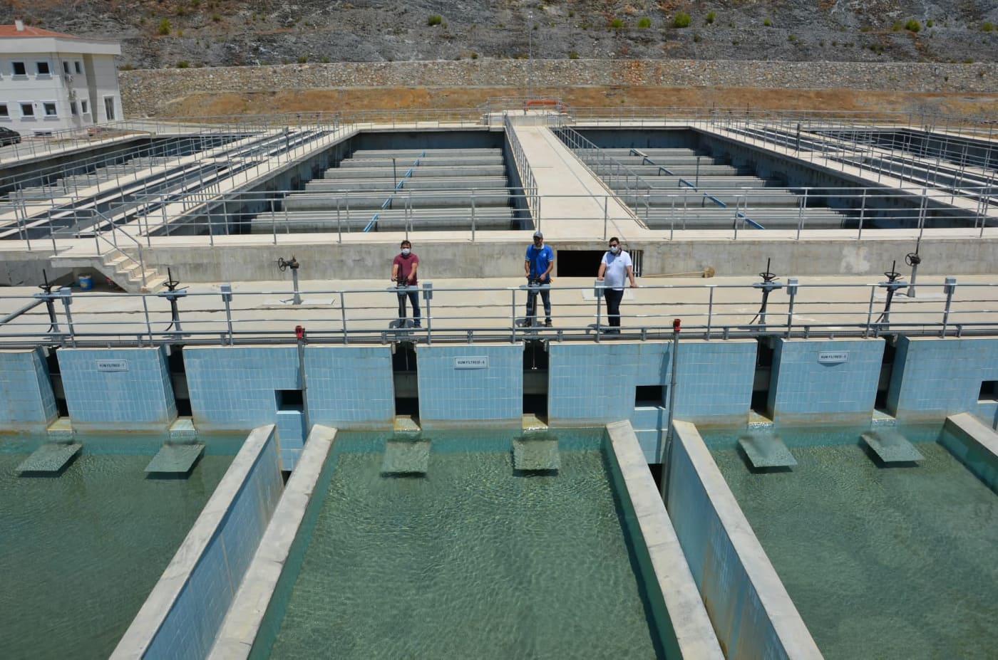 Dim Barajı’ndan içme suyu arıtma tesisine 1600 mm’lik çelik borularla 5 kilometrelik isale hattı çekilerek su getiriliyor. Burada ön ve son klorlama, kaskat havalandırma, hızlı ve kum filtrelerinden geçirilen su, İnsani Tüketim Amaçlı Sular Hakkındaki Yönetmelik’te belirtilen sınır değerleri sağlayacak şekilde arıtılıyor. Ardından 8.5 kilometre uzunluğundaki hatla Küçükhasbahçe Mahallesi’nde bulunan içme suyu deposuna ulaştırılıyor. Buradan da Alanya merkezdeki 17 mahalleye veriliyor.