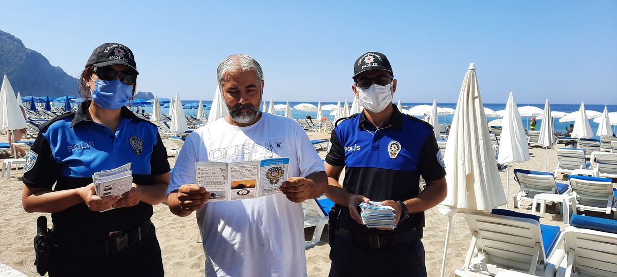 Alanya İlçe Emniyet Müdürlüğü TDP --Toplum Destekli Polislik Büro Amirliği son zamanlarda artan akıntılar nedeniyle boğulma vakalarına karşı vatandaşlara uyarıcı broşürler dağıttı...