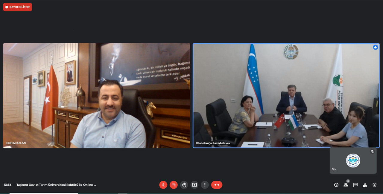 Alanya Alaaddin Keykubat Üniversitesi (ALKÜ) Rektörü Prof. Dr. Ekrem Kalan ile Taşkent Devlet Tarım Üniversitesi Rektörü Prof. Dr. Botirjon Abdushukirovich Sulaymanov arasında çevirim içi görüşme gerçekleştirildi. Yapılan görüşmede iki üniversitenin çeşitli konularda ortak çalışmalara imza atmaları konusunda fikir alış verişinde bulunuldu. Çevirim içi gerçekleştirilen görüşme neticesinde ALKÜ bünyesinde yapılacak tropik meyveler ile ilgili çalışma ve araştırmalar, öğrenci değişimi, akademik personel hareketliliği ve ortak çalışma alanlarının belirlenerek iki üniversite arasında koordinasyonun daha üst noktalara taşınması için görüş birliğine varıldı.