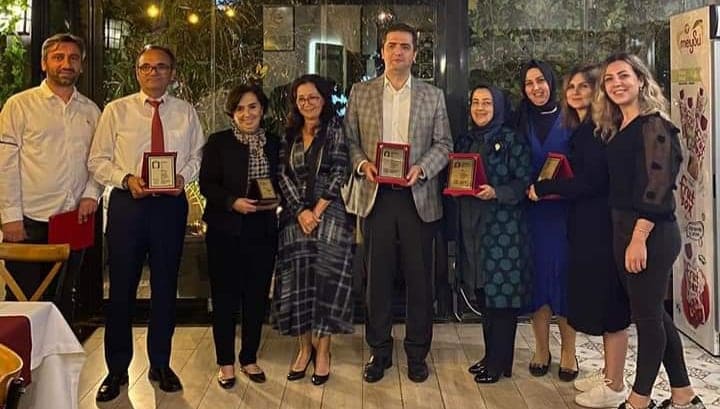 Antalya Mimarlar Odası Alanya Şubesi tarafından düzenlenen gecede meslekte 20'nci yılını dolduran Belediye Başkan Yardımcısı Tunahan Kasapoğlu'na plaketini Şube Başkanı Gülderen Toprak verdi.