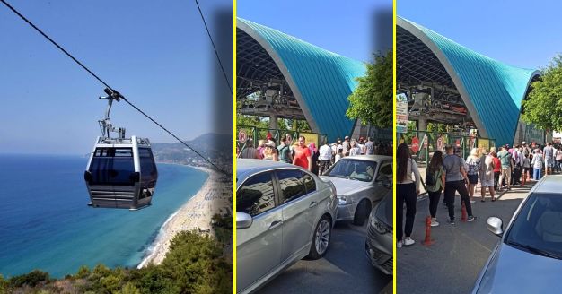 Alanya'nın, Sultan Alaaddin Keykubat tarafından fethinin 800.yılıncı Kutlama etkinlikleri kapsamında Alanya Belediyesi’nin vatandaşlara hediyesi olan ve gün boyunca ulaşımın ücretsiz sağlanacağı Alanya Teleferik önünde uzun kuyruklar oluştu.