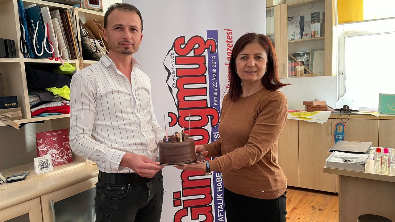 Coşkun ve beraberindekiler kuruluş yıl dönümü münasebetiyle Gündoğmuş Gazetesi İmtiyaz Sahibi Mesut Uygur’u tebrik etti. Kuruluş yıl dönümü nedeniyle pasta kesilmesinin ardından ziyaretçiler anı fotoğrafı çektirdi.