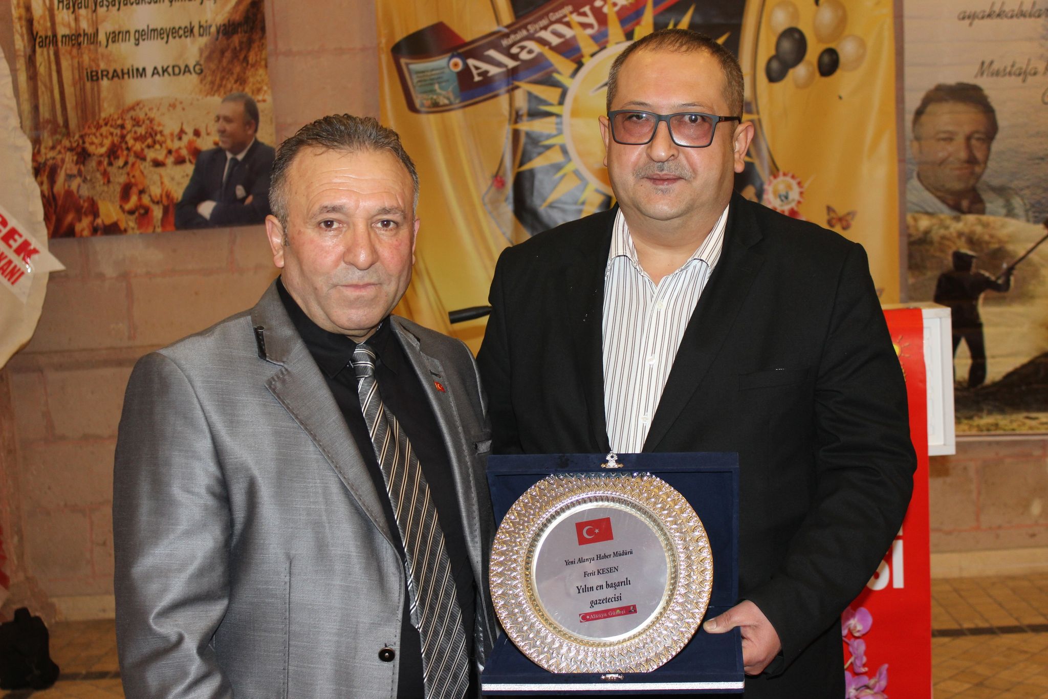 Etkinlik kapsamında Yeni Alanya Gazetesi Genel Yayın Müdürü Ferit Kesen’e yılın en başarılı gazetecisi ödülü verildi. Kesen, ödülünü Alanya Minibüsçüler Odası Başkanı Doğan Bacak’tan aldı.