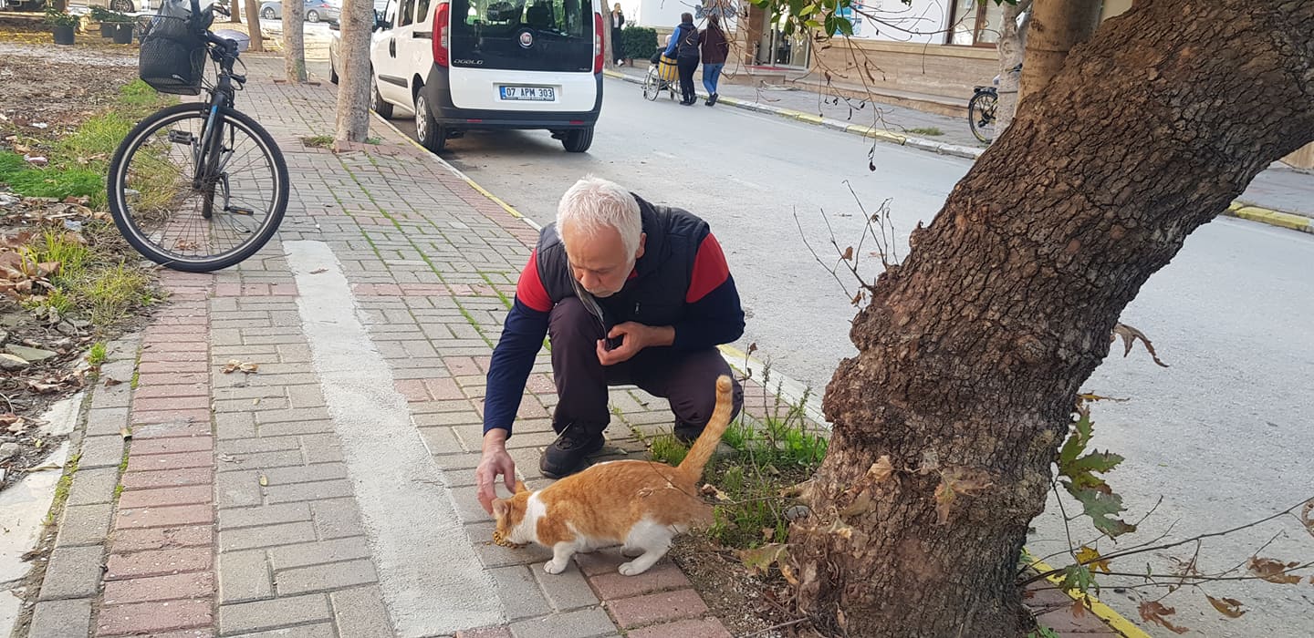 Alanya’da yaşayan İbrahim Akca, hayvan sevgisine sokakta bulduğu kediyi sahiplenmesiyle başladı. Daha sonra Akca , sokak hayvanlarına yardım eli uzatmaya başladı. Her gün evinden sokak hayvanları için yiyeceklerle çıkan İbrahim Akca, bisikletiyle sokak sokak dolaşıp kedilere kendi imkanıyla satın aldığı mamalar ile besliyor.