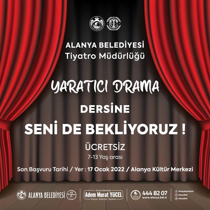 Yaparak ve yaşayarak öğrenme olarak da tanımlanan yaratıcı drama kurslarına başvurular başladı. Son başvuru tarihi 17 Ocak olarak belirlendi. Kurslara katılmak isteyen çocukların velileri, başvurularını 08.30 – 17.30 saatleri arasında Alanya Belediyesi Kültür Merkezi’ne yapmaya başladı.