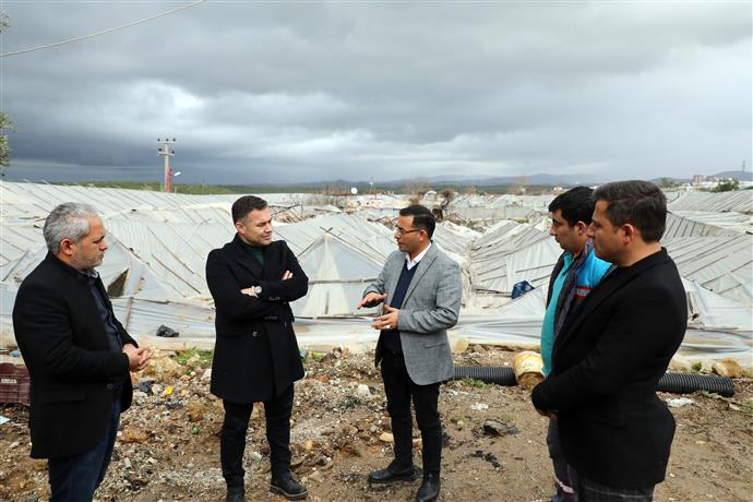 Fırtınadan etkilenen serada incelemelerde bulunan Alanya Belediye Başkanı Adem Murat Yücel; “Alanya’mızda hava muhalefetinden dolayı çiftçilerimize hem geçmiş olsun dileklerimizi iletmek hem de bölgedeki hasar tespiti adına buradayız. Afetten zarar gören ve tarım sigortası olmayan üreticilerimiz, hemşehrilerimiz var. Ziyaretlerimiz esnasında afetten zarar gören alanları inceledik; Ziraat Odası Başkanımız, üreticilerimiz ve muhtarlarımızla durum değerlendirmesi yaptık. Alanya Belediyesi olarak bu afette üzerimize düşen her şeyi yapacağız. Bugüne kadar olduğu gibi bugün de üreticimizin yanında olacağız. Fırtınadan etkilenen bütün hemşehrilerime geçmiş olsun.” dedi.