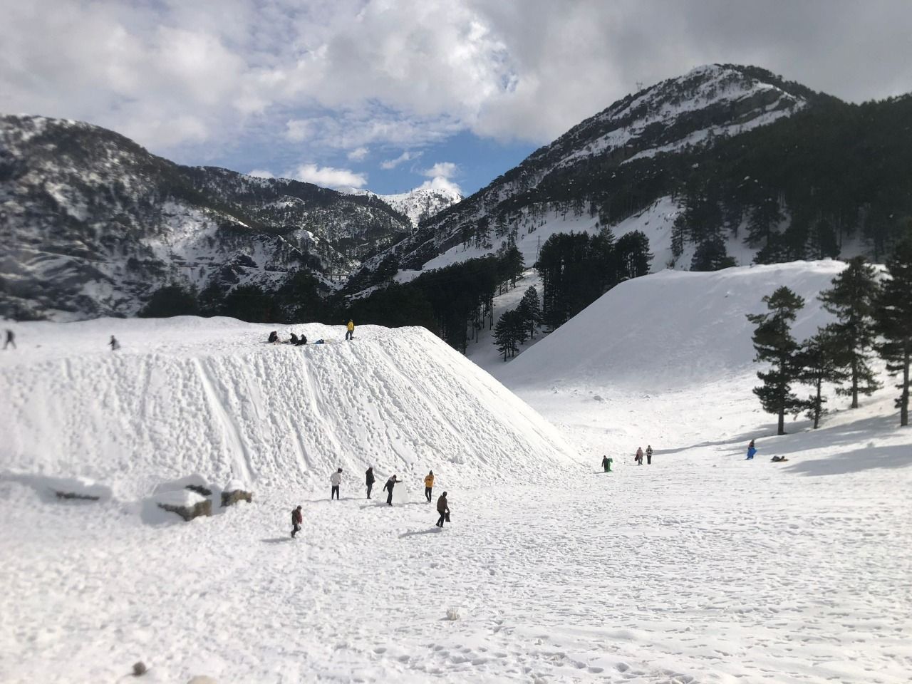 Kar yağmayan Alanya'da yerleşik halk aileleri ile Torosların eteklerinde Karda kaymak için ve karda piknik yapmak için dağı tercih ettiler.