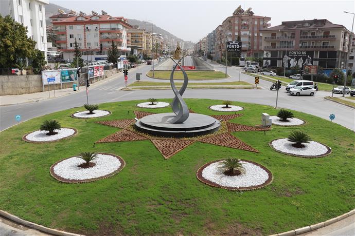 Alanya Belediyesi Park ve Bahçeler Müdürlüğü’nce yeniden dizayn edilen Telekom Kavşağı, yeni görüntüsüyle her kesimden takdir topluyor. Alanya Belediye Başkanı Adem Murat Yücel’in kent belleğinin taze tutulması ve gelecek nesillere aktarılması misyonuyla hareket eden ekipler, Telekom Kavşağı’nda Osmanlı Tuğrası’nın da yer aldığı yeni bir düzenleme yaptı. Renkli görüntüsünün yanı sıra geçmişten günümüze bir bağ oluşturan düzenlemeyi, sürpriz bir isim de ziyaret etti.