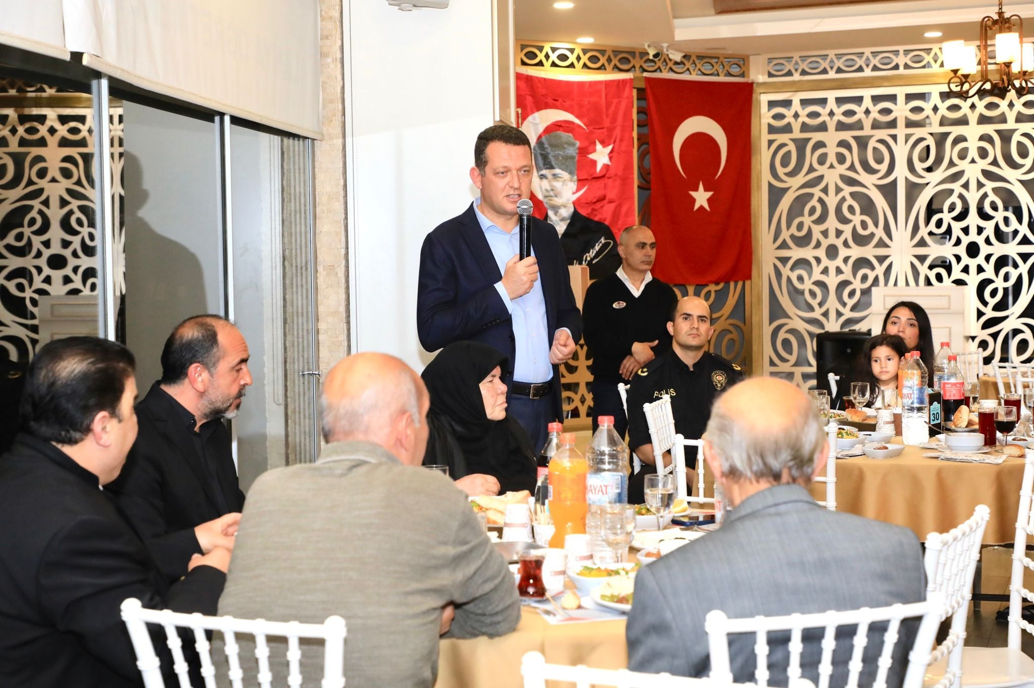 İlçe Emniyet Müdürü’nün konuşmasının ardından Kaymakam Ürkmezer misafirlere hitap ederek “Şehitlerimiz ve gazilerimizin değerli aileleri hepinizi sevgi ve saygı ile selamlıyorum. Böyle güzel ve anlamlı bir günde İlçe Emniyet Müdürlüğümüzün düzenlediği iftar programında siz saygıdeğer şehit ve gazi ailelerimizle birlikte olmaktan çok mutluyuz. Öncelikle şuna inanıyoruz ki bizim için vatan için canını kanını döken polis ve askerlerimiz ve gözünü kırpmadan göreve koşanlar sayesinde özgür bir şekilde yaşıyoruz. Bizler onlar sayesinde ayakta durup yaşıyorsak onların bize bıraktığı emanetlere sahip çıkmaya devam edeceğiz. Şehidimizin ve gazimizin emanetine her zaman öncelik vereceğiz. Atalarımızın bize bıraktığı bu güzel vatanı geleceğimizin teminatı olan çocuklarımıza özgür ve müreffeh şekilde bırakacağız. Bu birlik ve beraberliği sağladığımız sürece bu ramazanları güzel bir şekilde eda edeceğiz. Bu vesileyle bütün şehitlerimize ve vefat eden gazilerimize rahmet diliyorum ve bütün polislerimizin polis haftasını kutluyorum” dedi.