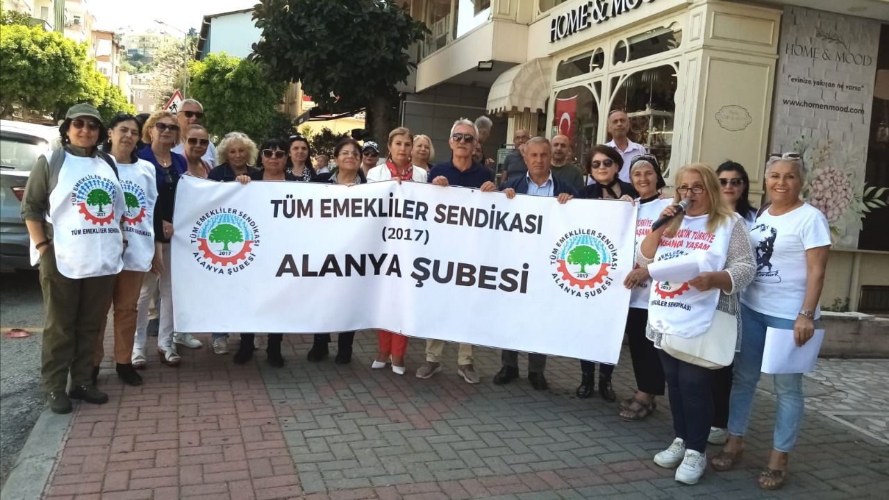 2017 Tüm Emekli Sen Alanya Şubesi, PTT yanında, Eğitimsen Şubesi önünde basın açıklaması yapıp slogan attı. Hükümet ten istenen 13 maddelik talepler dile getirildi. Açıklamayı yapan 2017 Tüm Emeklisen Alanya Şube Başkanı Kıymet Erat şunları ifade etti...