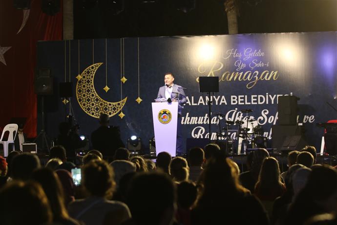 Alanya Belediye Başkanı Adem Murat Yücel’in geleneksel hale getirdiği İftar Sofrası ve Ramazan Şenlikleri Mahmutlar halkı ile buluştu. Mahmutlar AVM önünde kurulan İftar Sofrasına binlerce vatandaş katıldı. Vatandaşlar, ezanın okunması ile hep birlikte oruçlarını açarak dua ettiler. İftarın ardından ise Mahmutlar Ek Hizmet Binası önünde Ramazan Şenlikleri düzenlendi. 7’den 70’e herkesin büyük bir ilgiyle izlediği şenliklerde jonglör, tahta bacak ve ateşbaz gösterileri yapıldı. Gösterilerin ardından ise Alanya’nın sevilen sesi Cüneyt Güzel sahne aldı. Cüneyt Güzel şarkıları ile Mahmutlar Halkına unutulmaz bir akşam yaşattı.