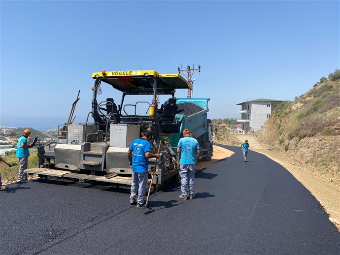 Alanya Belediyesi Fen İşleri Müdürlüğü Ekipleri doğudan batıya Alanya’nın her köşesinde yol genişletme ve asfaltlama çalışmalarını sürdürüyorlar. Ekipler, Konaklı Mahallesi’nde Yusuf Yiğit Sokak ile Pamukyeri Sokak arasındaki imar yolunda genişletme çalışmalarının büyük bölümünü tamamlayarak sıcak asfalt serim işlemini yapıyorlar.