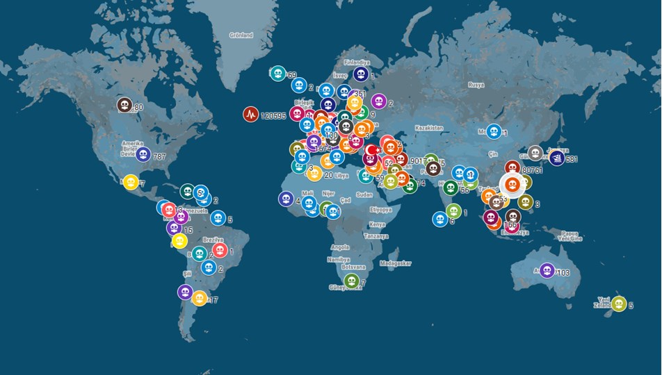 Vaka sayıları 10 bini aşan ülkeler şöyle sıralandı: Fransa (59 bin 105), İran (50 bin 468), İngiltere (33 bin 718), İsviçre (18 bin 827), Türkiye (18 bin 135), Belçika (15 bin 348), Hollanda (14 bin 697), Avusturya (11 bin 76) ve Kanada (11 bin 68).
