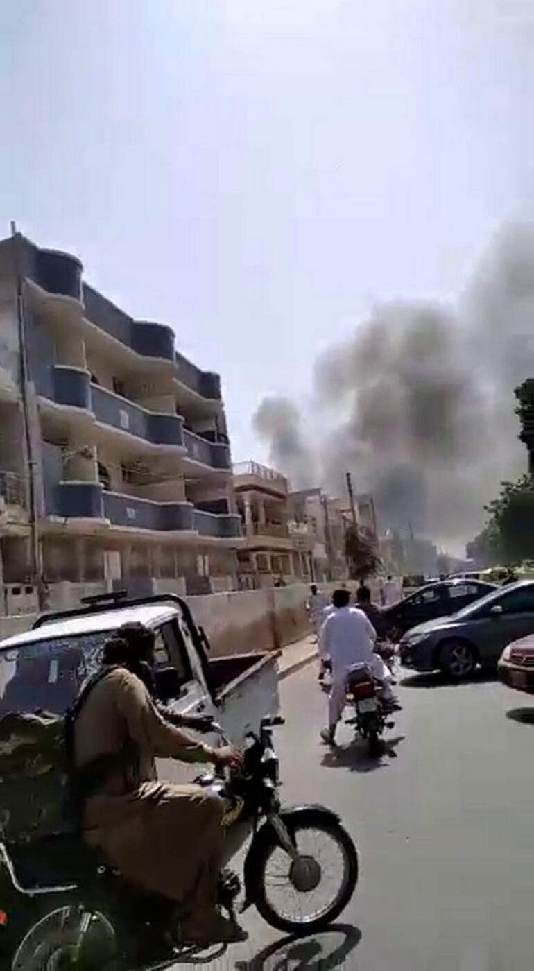 Karaçi kentindeki havalimanı yakınlarındaki evlerin üstüne çakılan uçakta, 107 kişi bulunuyordu. İlk gelen görüntülerde, uçağın düştüğü noktadan büyük siyah dumanların yükseldiği görülüyor...