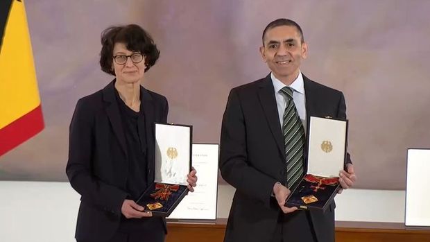 BioNTech şirketinin kurucuları Dr. Özlem Türeci ile Prof. Uğur Şahin’e Almanya'nın en üst düzey devlet madalyası olan Yıldızlı Liyakat Nişanı verildi. Madalyalar Cumhurbaşkanı Frank-Walter Steinmeier tarafından Bellevue Sarayı’nda düzenlenen törenle takdim edildi. Törende Başbakan Angela Merkel de hazır bulundu. Cumhurbaşkanı Steinmeier ödül töreninde yaptığı konuşmada İrlandalı yazar Oscar Wilde'ın sözüne atıfta bulunarak "Gelecek, mümkünü görünür hale gelmeden önce fark edenlerindir" ifadelerini kullandı.