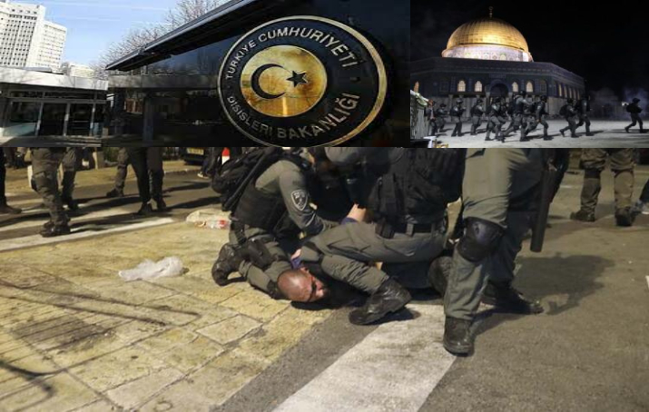 Dışişleri Bakanlığı, İsrail güvenlik güçlerinin Mescid-i Aksa'da ibadet eden Filistinlilere yönelik saldırısını şiddetle kınadı. Bakanlıktan yapılan açıklamada, "İsrail güvenlik güçlerinin Mescid-i Aksa'da ibadet eden Filistinlilere yönelik gerçekleştirdiği ve çok sayıda Filistinli sivilin yaralanmasına sebep olan saldırıları şiddetle kınıyoruz." ifadesi kullanıldı.