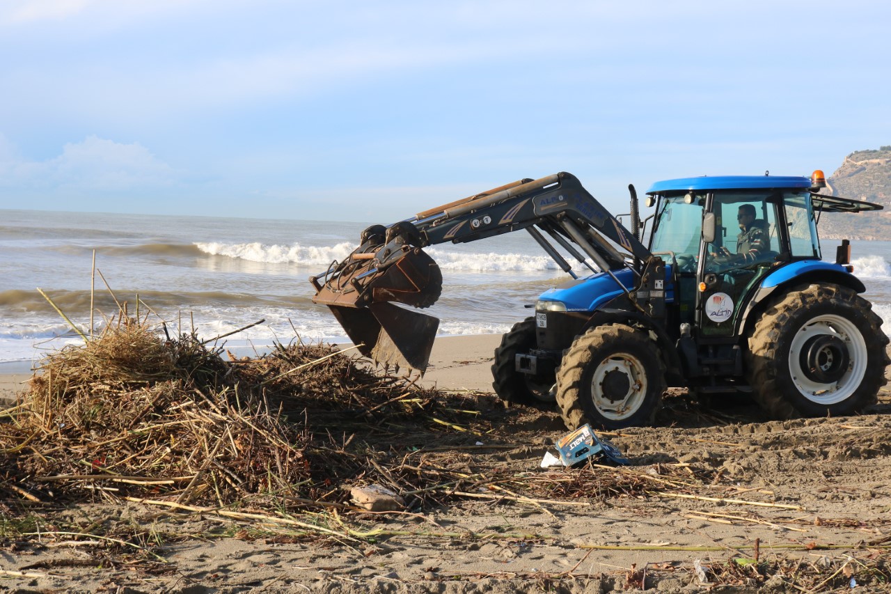 Şiddetli yağış, fırtına ve dev dalgalar sonrasında deniz kıyılarında oluşan kirliliği; Alanya Turistik İşletmeciler Derneği (ALTİD) temizlik ekibi ortadan kaldırılıyor. Alanya’nın Doğu ve Batı bölgelerinde gün boyu süren çalışmalarla sahiller eski görünümüne kavuşuyor.