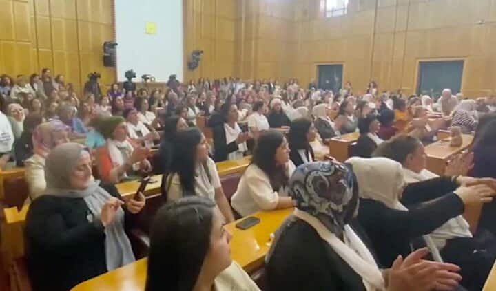 DEM Parti'nin Grup Toplantısı'na 1 Ekim'de Diyarbakır'dan Ankara'ya, "Umutla Özgürlüğe Yürüyoruz" yürüyüşünü düzenleyen kadınlar katıldı. Ardından toplantıya katılan grup, "Biji Serok Apo" sloganları attı.