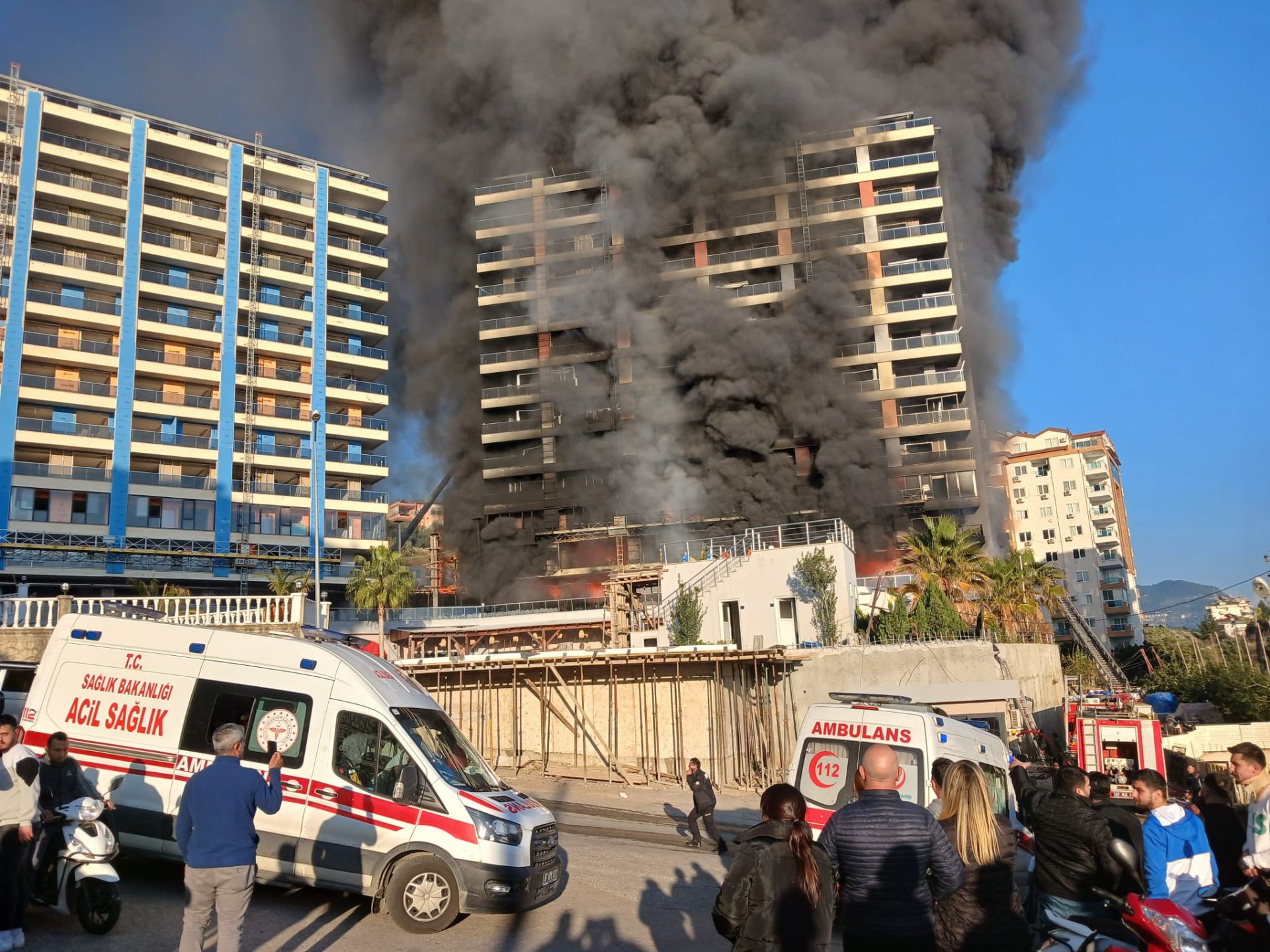 "12 katlı bir otel inşaatının devamı sırasında kaynak ateşinin yataklar üzerine düşmesiyle alevler başladı. İşçiler önce söndürmeye çalışsa da başaramadılar. Ama şu anda kontrol altına alabilmek için itfaiye ekiplerimiz yoğun şekilde uğraşıyor.