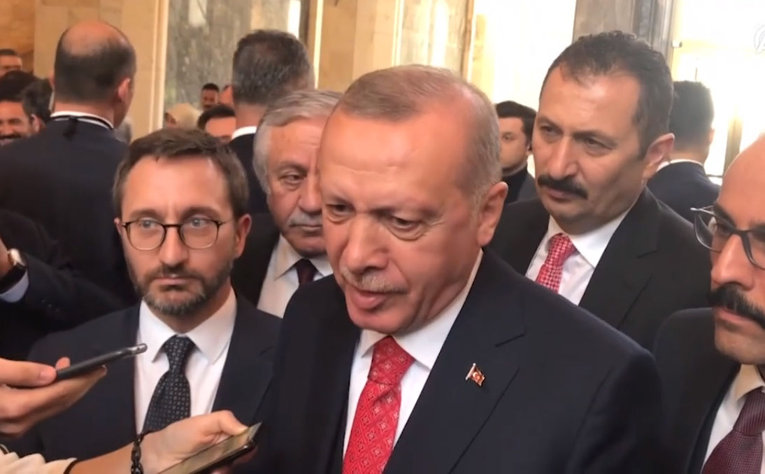 Erdoğan ayrıca, meclis çıkışında gazetecilere yaptığı açıklamada "İstiklal Marşı'nı söylemeyenleri, Mehmetçiği şehit edenleri, onlarla omuz omuza olanları dinleyelim mi?" ifadelerini kullandı.