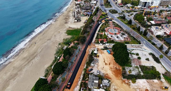 Alaaddin Keykubat Parkı ile Türkmenbaşı Sokak arasındaki ilk etapta Alanya Belediyesi Fen İşleri Müdürlüğü ekipleri sıcak asfalt çalışmalarına başladılar. Kısa sürede tamamlanacak çalışmaların ardından ilk etap trafiğe açılacak ve asfalt serimi etap etap devam edecek. Alanya Belediye Başkanı Osman Tarık Özçelik asfalt çalışmalarını yerinde inceledi. Ekiplere kolay gelsin dileklerini ileten Başkan Özçelik’e CHP Alanya İlçe Başkanı Bülent Kandemir, Belediye Başkan Yardımcısı Murat Levent Koçak, Başkan Danışmanları Sadık Dizdaroğlu, Faruk Konukçu ve Nazmi Zavlak eşlik etti.