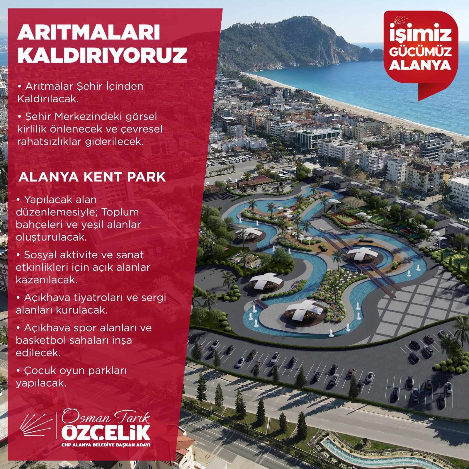 Alanya şehir merkezindeki artıma tesisleri Antalya Büyükşehir Belediyesi işbirliğiyle şehir dışına taşınacak. Boşalan alanlara Kent Park inşa edilecek.