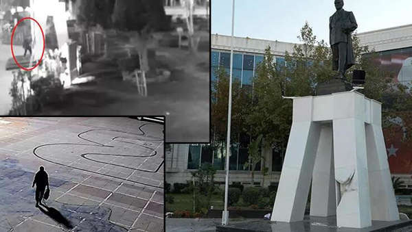 Aracını park eden şüpheli, yanında taşıdığı sırt çantasından çıkardığı küçük balyozla anıtın yükseldiği mermer bloklarını kırdı. Kaidenin iki ayağındaki mermerleri kıran kişi, otomobiline döndü ve olay yerinden ayrıldı.