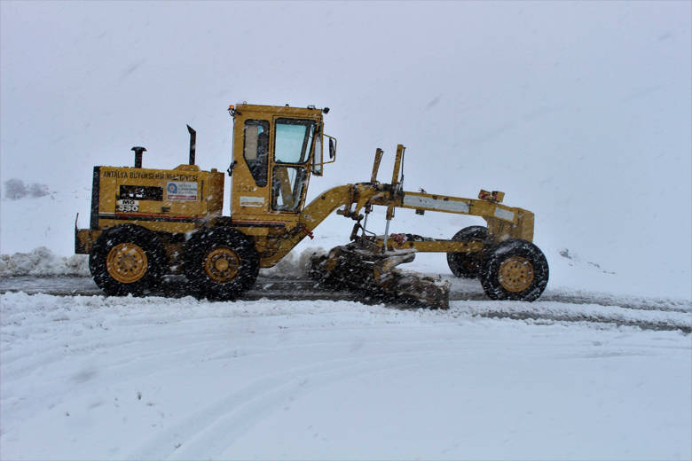 Antalya’da sahil kesimlerinde etkili olan sağanak yağış yüksek kesimlerde kara dönüşerek, hayatı olumsuz etkiledi. Korkuteli’nin yüksek kesimlerinde kar kalınlığı yer yer 50 santimetreye ulaştı. Antalya Büyükşehir Belediyesi Kırsal Hizmetler Dairesi Başkanlığı, Korkuteli ilçesinde etkisi daha çok hissedilen kar nedeniyle kapanan yolları ulaşıma açmak için seferber oldu. Kırsal Hizmetler ekipleri, Korkuteli genelindeki tüm grup yollarını trafiğe açık tutmak için yoğun bir mesai harcadı. Yolda kalan araçlar kurtarıldı.