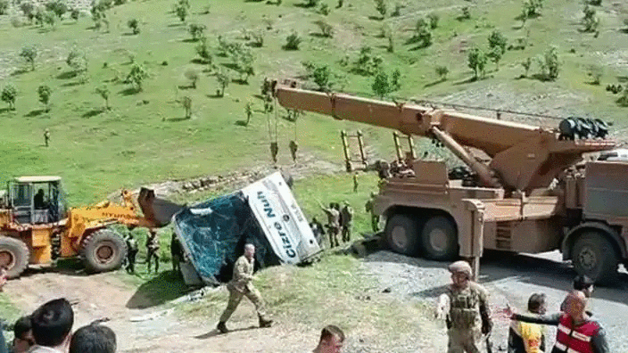 Yaralı 44 asker ve sürücü ilk müdahalelerinin ardından ambulanslarla hastaneye götürüldü. Otobüs, vinçle bölgeden kaldırılırken, kazayla ilgili inceleme başlatıldı.