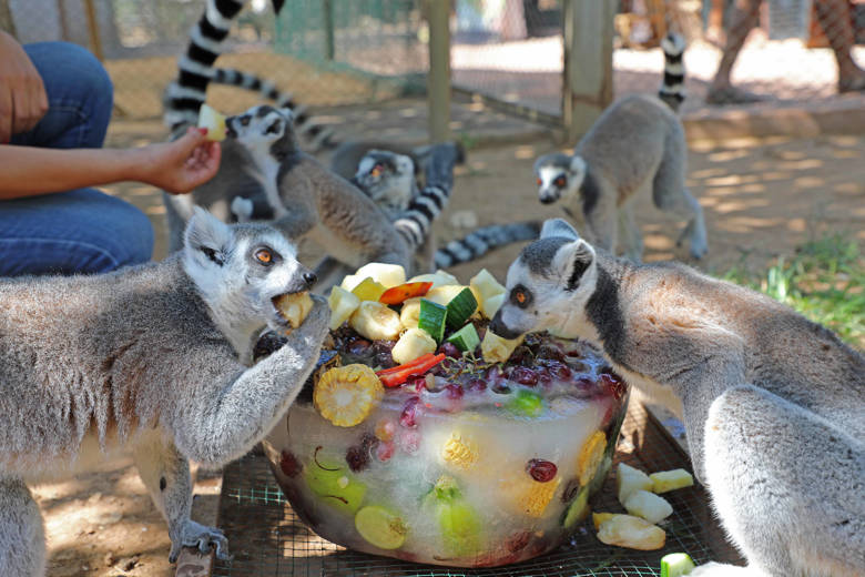 Antalya'yı etkileyen sıcak hava dalgası hayvanları da zor durumda bırakıyor. Doğal Yaşam Parkı’ndaki görevliler hayvanları sıcaklardan korumak için büyük çaba sarf ediyor. Sıcaktan bunalan hayvanları özel hazırlanmış buz kalıpları içinde meyve kokteylleri ile besleniyor. Doğal Yaşam Parkı sakinlerinden lemur, eşek, at, zebra, deve ve maymunlar karpuz, kiraz, üzüm, elma gibi meyvelerden oluşan buzlu kokteyllerini yiyerek serinliyor. Doğal Yaşam Parkı’nda sıcaklara karşı ayrıca hayvanların kafeslere konulan fıskiye sistemi, havuzlar, koyu gölgelik alanlar aracılığıyla da serinlemeleri sağlanıyor.