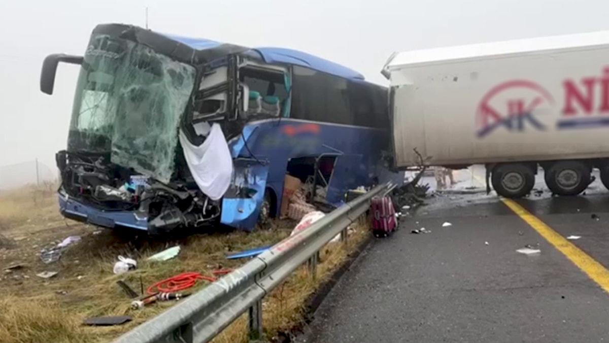 Yoğun sisin ve yağmurun etkili olduğu Şanlıurfa-Gaziantep otoyolu bağlantı yolunda 34 FVK 835 plakalı yolcu otobüsüyle aynı yöne seyir halindeki 67 AK 846 ve 33 DES 29 plakalı tırlar çarpıştı.