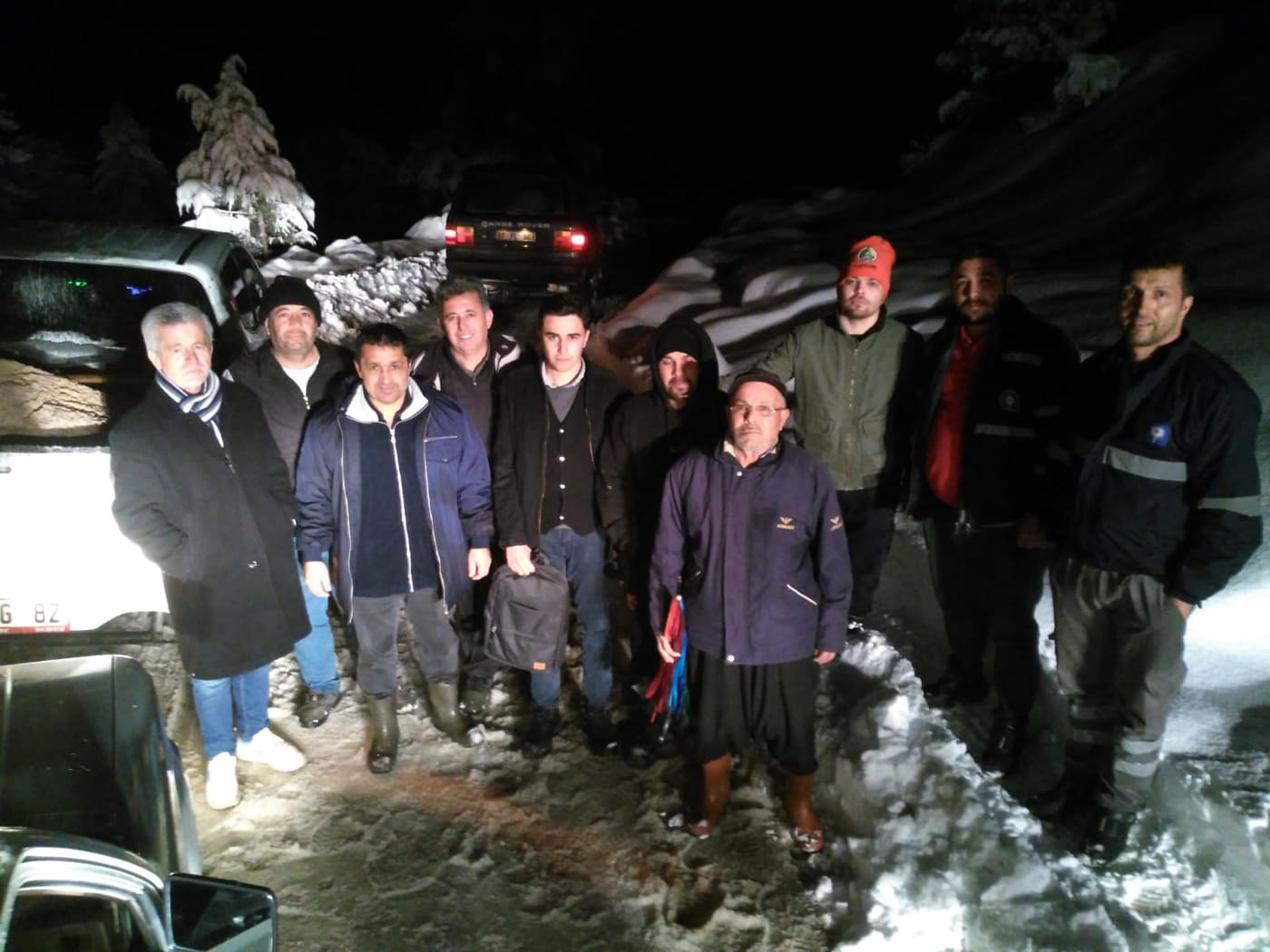 Alanya’da Köprübaşı Yaylası’ndan yola çıkan beş kişi Taşatan Hacıbeleni ve Erikçiler mevkiinde kar ve tipi nedeniyle araçlarının içinde mahsur kaldı. Büyükşehir’den yardım isteyen vatandaşların kurtarılması için Kırsal Hizmetler Daire Başkanlığı ekipleri kısa sürede bölgeye gitti. Vatandaşlara gerekli yardımı yapan ekipler, iş makineleriyle yolda kalan araçları çekerek güvenli bölgelere taşıdı. Gecenin geç saatlerinde yardımlarına koşan Büyükşehir ekiplerini karşılarında gören vatandaşlar mutlu oldu. Vatandaşlar kısa sürede kendilerini kurtaran ekiplere ve Başkan Muhittin Böcek’e teşekkür etti.
