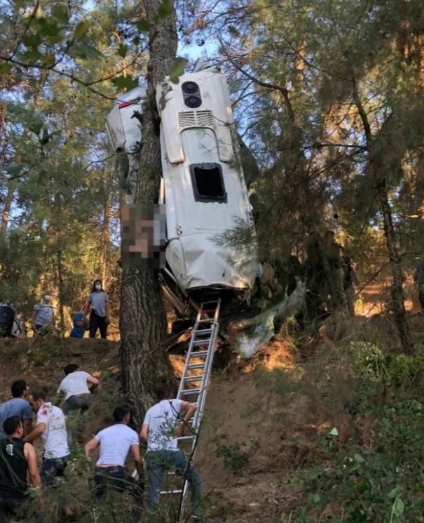 Пролетев по 25-метровому склону и несколько раз перевернувшись, микроавтобус с госномером 35 L 1610 под управлением 54-летнего Ильхама Суата врезался в дерево.