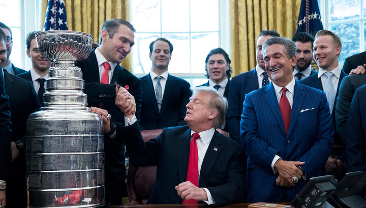 Президент США Дональд Трамп принял в Белом доме победителя Кубка Стэнли “Вашингтон Кэпиталз”. В числе приглашенных были российские хоккеисты Александр Овечкин, Евгений Кузнецов и Дмитрий Орлов. Президент США особо отметил капитана команды Александра Овечкина. ”...