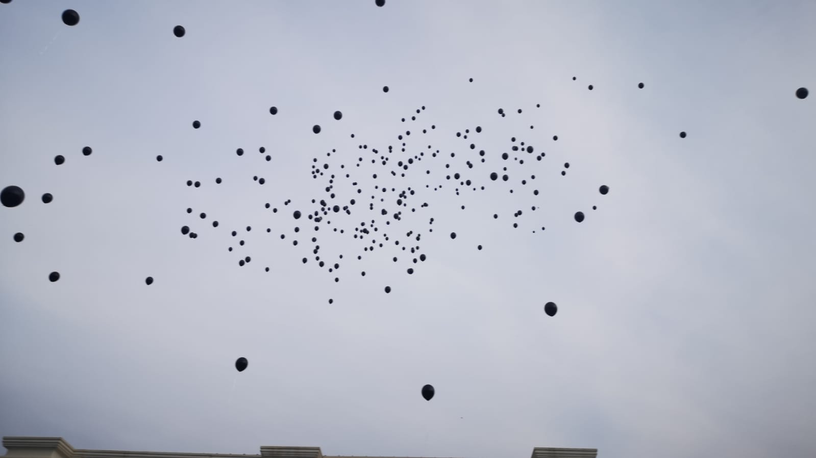 Konuşmanın ardından ise sağlıkta şiddeti kınamak için gökyüzüne siyah balonlar uçuruldu.