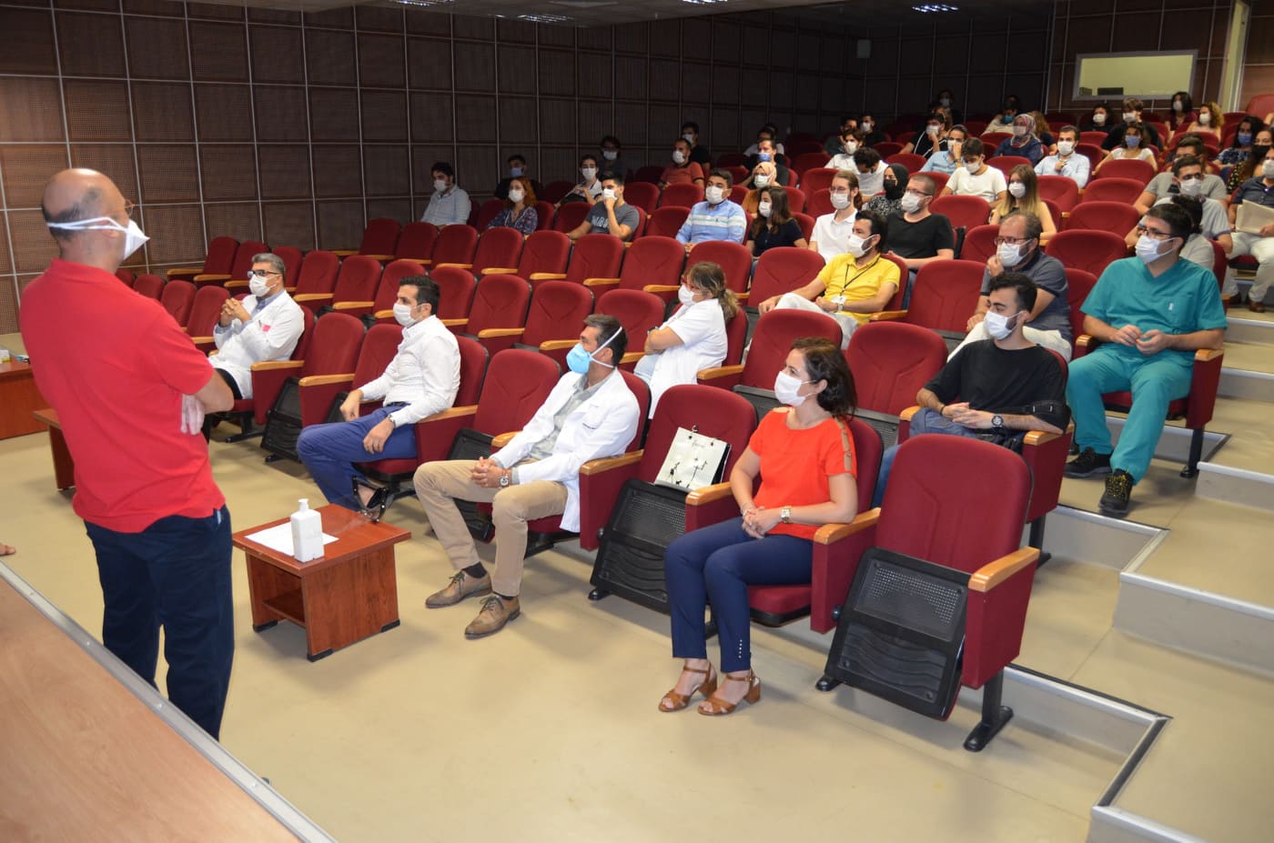 İlk eğitim dersinde ; Hastane Başhekimi Prof. Dr. Hüseyin Lakadamyalı, Tıp Fakültesi Dekanı Prof. Dr. Burak Yuluğ, dönem 4 koordinatörü Prof. Dr. Barış Mülayim, dekan yardımcıları, başhekim yardımcıları, akademisyenler ve öğrenciler hastanenin konferans salonunda bir araya geldi.