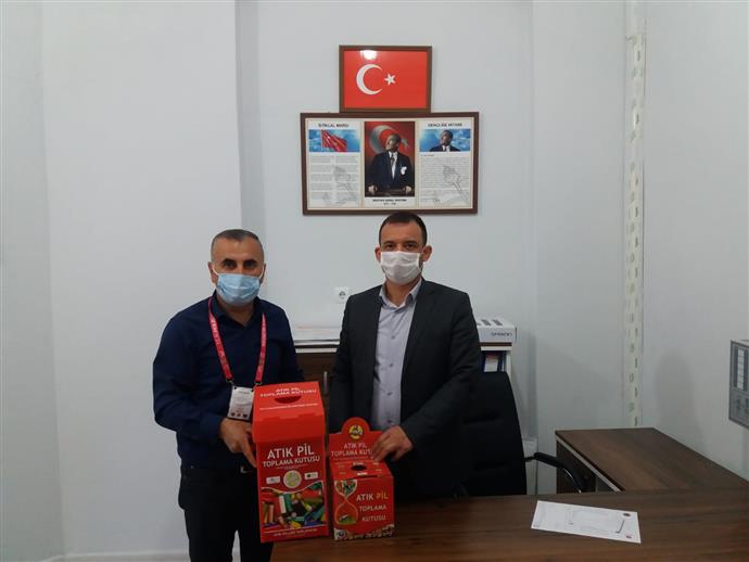 OKULLARA ATIK PİL TOPLAMA KUTUSU VE AFİŞLER DAĞITILIYOR...