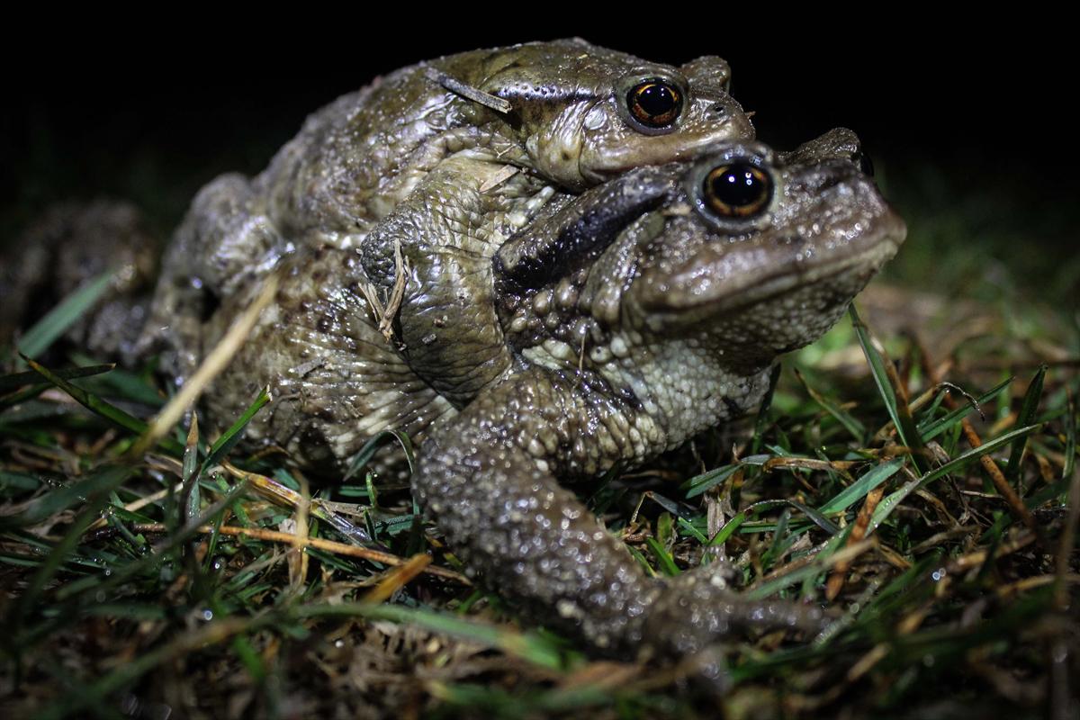Gece gündüz birbirlerinin sırtında karayolunu geçmeye çalışan kurbağalardan bazıları, araçların altında ezilerek telef oluyor.