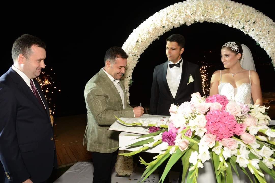 Genç çiftin nikahlarını Alanya Belediye Başkan Yardımcısı Ali Yenialp kıyarken, nikah şahitliklerini ise Alanya Belediye Başkanı Adem Murat Yücel ile damadın eniştesi olan HSK Müfettişi Savcı Cihan Sezen yaptılar.