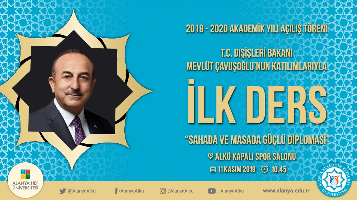 ALKÜ’de 2019-2020 Akademik Yılı Açılış Töreni ile “Sahada ve Masada Güçlü Diplomasi” konulu ilk ders programına katılacak olan Bakan Çavuşoğlu’nun Alanya’da birçok ziyarette bulunacağı belirtilirken, ALKÜ’ye yeni atanan Prof. Dr. Ekrem Kalan ile Alanya Eğitim ve Araştırma Hastanesi Başhekimi olarak görevlendirilen Prof Dr. Hüseyin Lakadamyalı’yı da ziyaret edeceği öğrenildi.