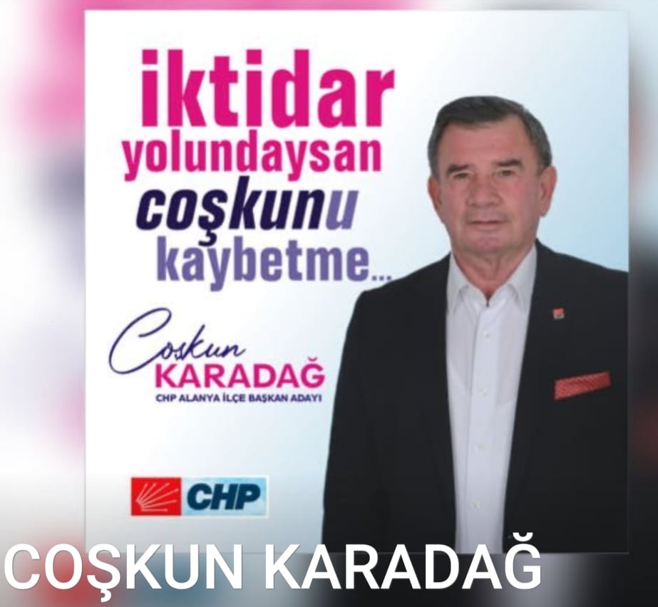 Seçime iki hafta kala sosyal medyadan grup oluşturan CHP Alanya İlçe Başkanı Coşkun Karadağ, kendisine seçtiği sloganı da açıkladı. Karadağ, “İktidar yolundaysan Coşkun’u kaybetme!” sloganıyla seçimlere gireceklerini kaydetti.