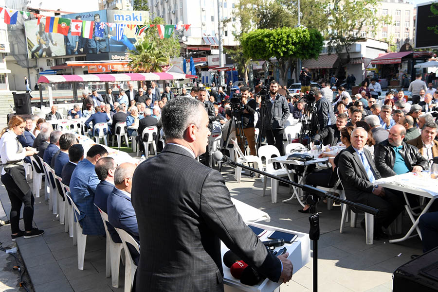 Turizm Haftasının öncelikle Antalya’ya ve esnafa hayırlı olmasını dileyen Başkan Semih Esen, Antalya’nın turizmden elde ettiği gelirden esnafın hakettiği payı alması gerektiğini söyledi. “Taze bir belediye başkanı olarak içinizden çıkan bir arkadaşınız olarak bu konuyla ilgili düşüncelerimi paylaşmak istiyorum.” diyen Semih Esen şöyle konuştu; “Turizmden şehir içindeki esnafın umulan payı alması bazı şartlara bağlıdır. Tatilini Antalya’da geçirmek isteyen turistlerin bir sebebi olması lazım. Bu sebeplerden bazıları esnaf tarafından, bazılarının biz yöneticiler, bazıların ise sanatçı ve kültür adamları tarafından oluşturulması gerekir. Bütün bunların da birlik ve bütünlük içinde yürütülmesi son derece önemlidir. Bizler bu anlamda üzerimize düşen her türlü sorumluluğu almaya hazırız. Yeni turizm sezonunun tüm Antalya’mıza hayırlı olmasını diliyorum”
