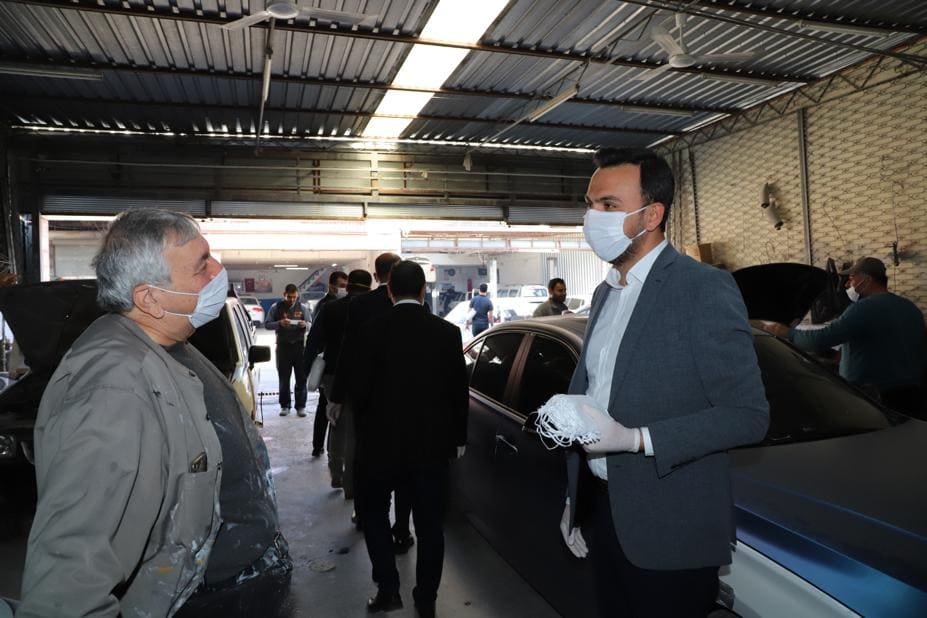 Sanayi esnafına maske dağıtan Başkan Toklu ziyareti, “Bugün ki esnaf ziyaretimizi sanayi sitesinde gerçekleştirdik. Metal İşleri Odası Başkanımız Kerim Taş ile birlikte Korona virüs salgını tedbirleri amacı ile sanayi esnafımıza maskelerimizi dağıtıp hayırlı cumalar diledik.” şeklinde değerlendirdi.