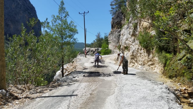Kırsal alan ekipleri diğer yandan yaz aylarında Alanya ve Gündoğmuş'ta yaşayan vatandaşların kullandığı Taşatan grup yolunda bakım onarım ve yama çalışmasının yanı sıra şarampol ve yağmur gideri temizliği gerçekleştirdi.