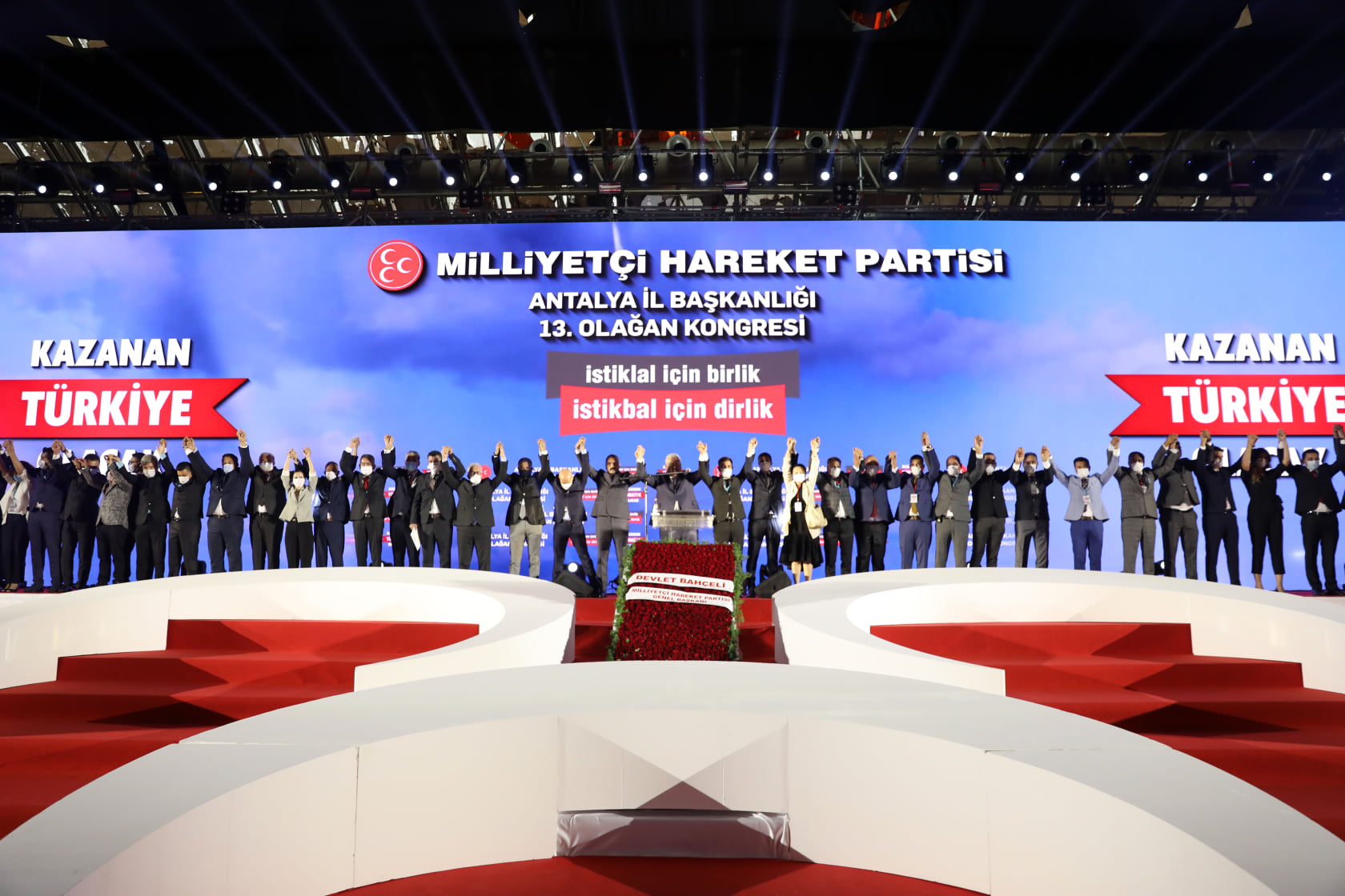 Antalya Cam Piramit Fuar ve Kongre Merkezi'nde MHP Antalya İl Başkanlığı, 13. Olağan Kongresi'ni gerçekleştirdi.