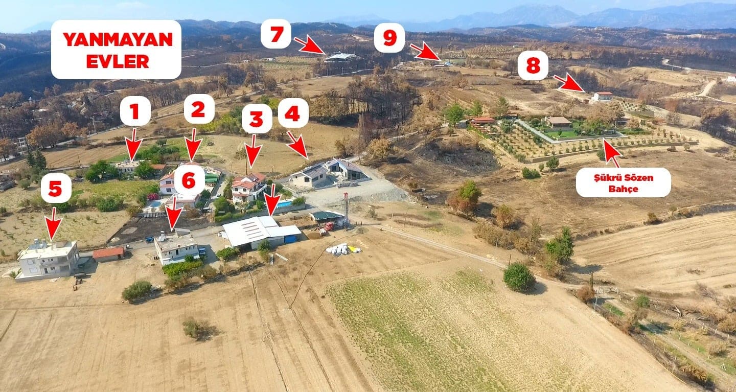 Zaten haber adı altında paylaşılan harita görüntüleri de göstermektedir ki; evin yalnızca tek bir cephesinde ağaçlar bulunmakta, diğer cephelerde büyük yangın ihtimali olmayan düz arazi yer almaktadır. Ayrıca evin etrafında DOĞAL OLARAK ağaçlarla evin bağlantısını kesen yol bulunmaktadır. Yangın esnasında yol açılmış olması söz konusu değildir. Detaylı açıklamayı Başkanımızın kendisi zaten yapmıştır.