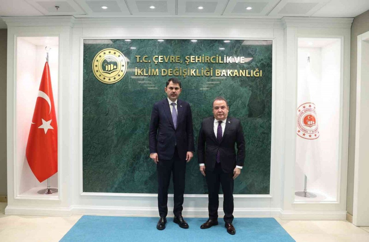 Antalya Büyükşehir Belediye Başkanı Muhittin Böcek, Çevre, Şehircilik ve İklim Değişikliği Bakanı Murat Kurum’u ziyaret ederek, Antalya kent bütününü ilgilendiren, 19 ilçeyi kapsayan 1/100 bin ölçekli çevre düzeni planının onay sürecini görüştü...
